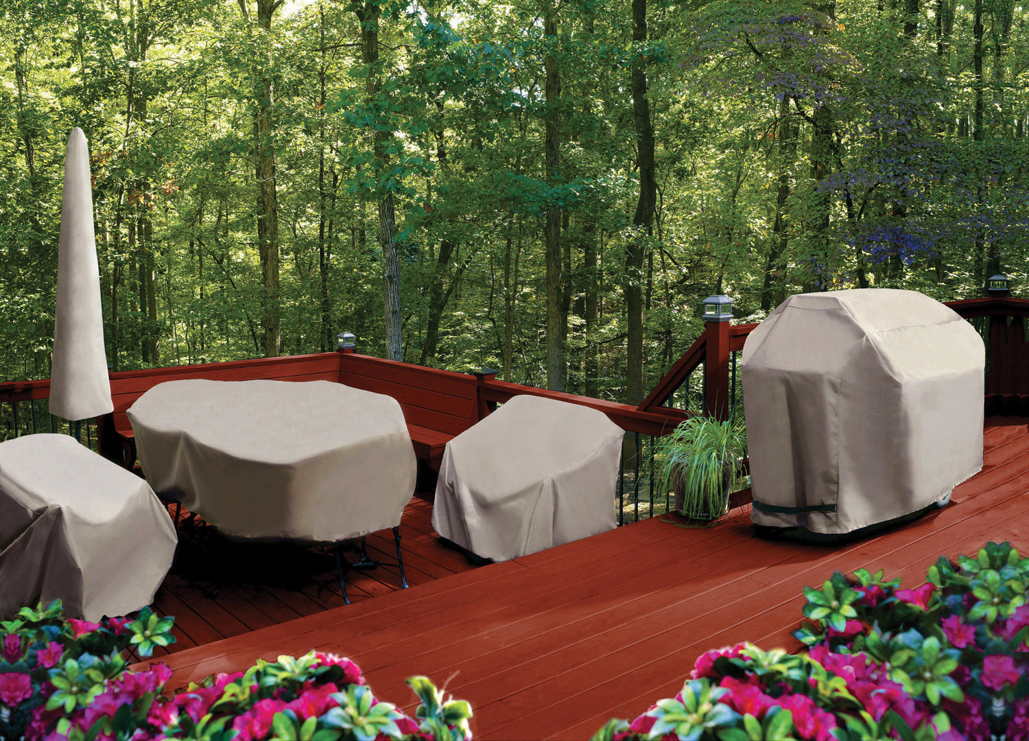 - Heavyweight polyester with PVC lining with enhanced UV protection