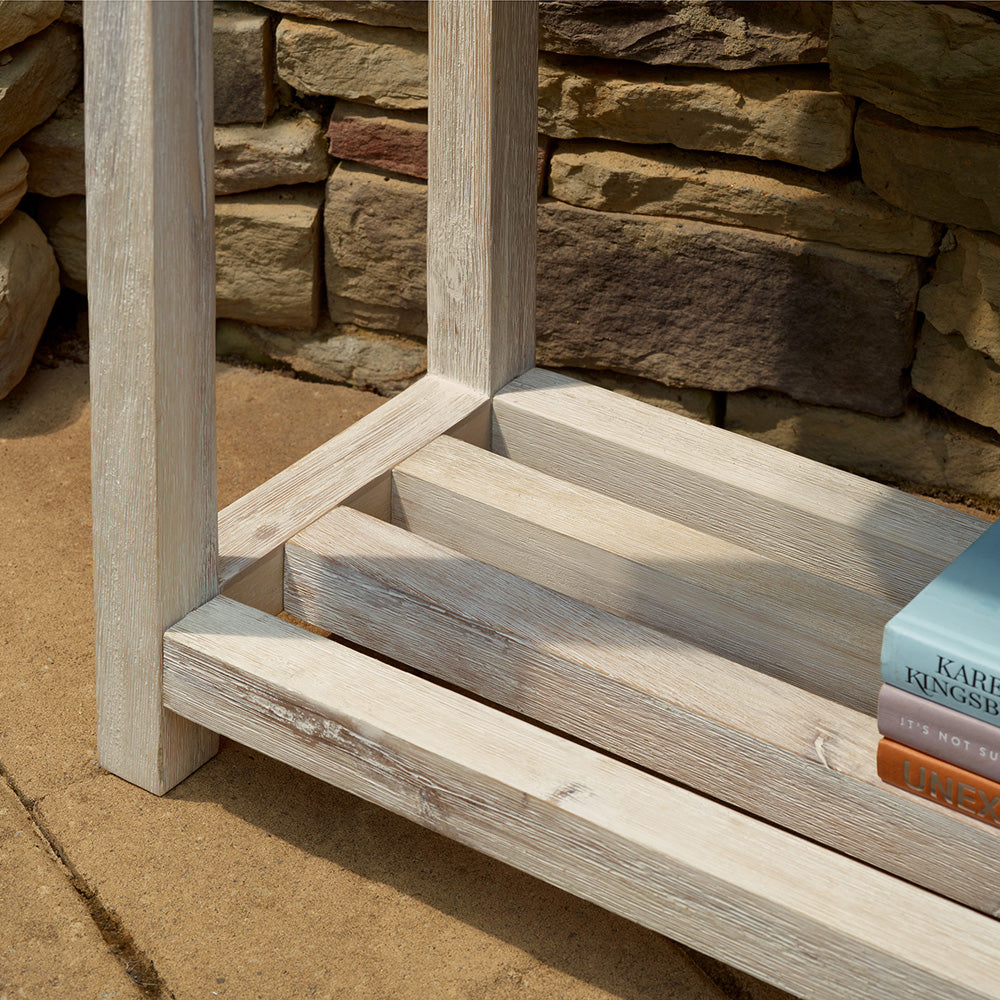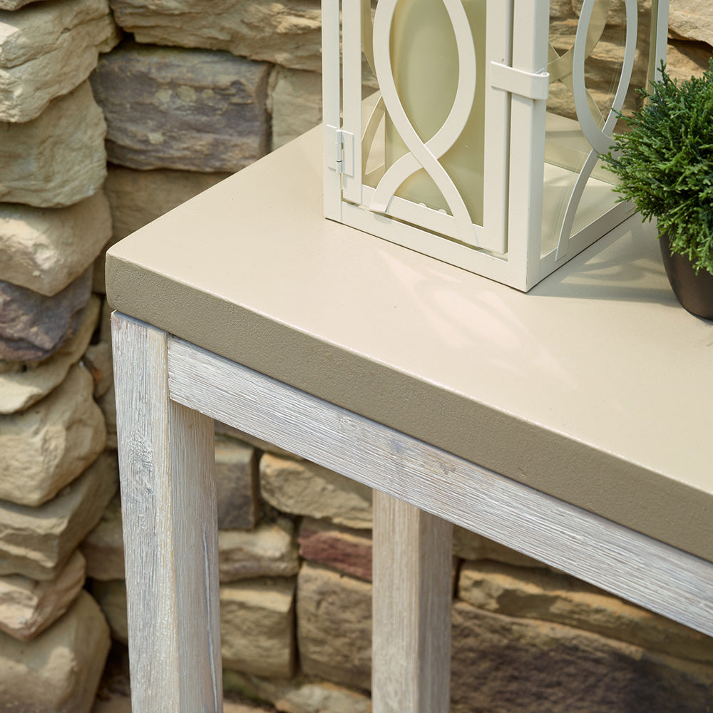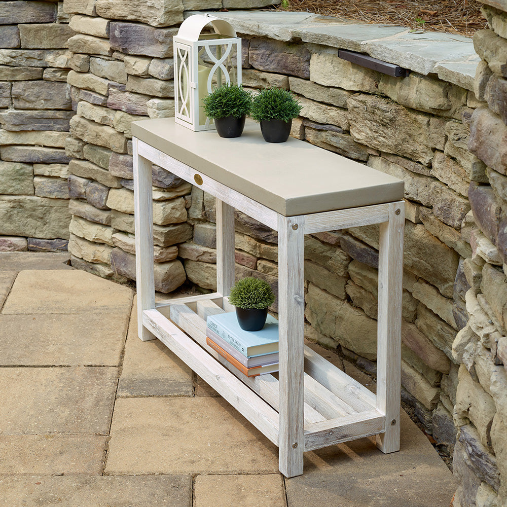 Add a beautiful finishing touch to your patio, porch or front hallway with this contemporary styled cement and wood console table. Made from high quality cement and acacia wood, this clean lined table has two shelves that lend themselves nicely to both decor and functionality. Use this to display items in your indoor spaces, or out on the patio for a serving table for the perfect party. Each is made individually, so slight color and size variances may occur. Add a fresh, new look to your home today!