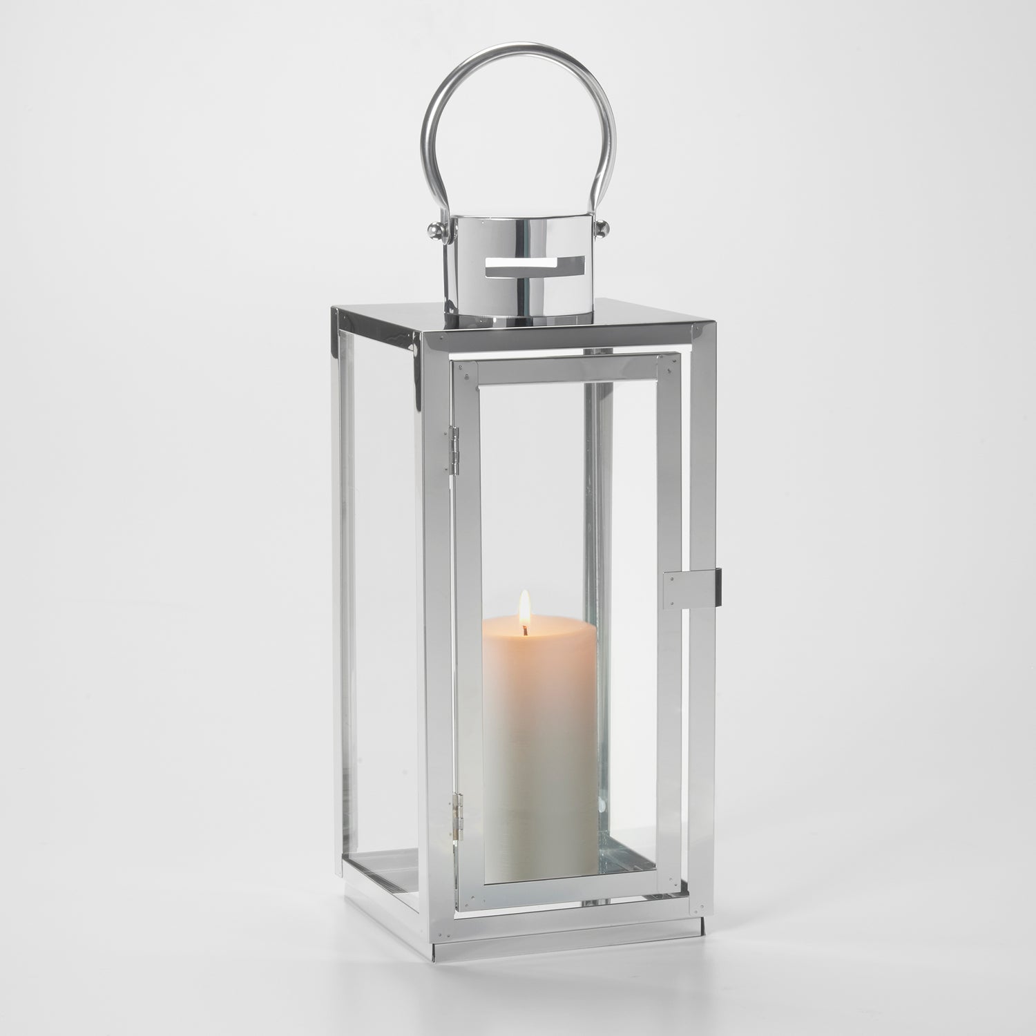 Simplicity is the ultimate sophistication. The Daphne is a 15” tall lantern with a stainless steel frame. Use this lantern as a candle holder or leave it as is with seasonal decorations to add dimension to your indoor or outdoor space. It is the perfect addition to your indoor or outdoor home any time of the year, ranging from summer to winter. Whether you place it as an accent piece on the table or hang it from your patio, it is guaranteed to add elegance to your space.