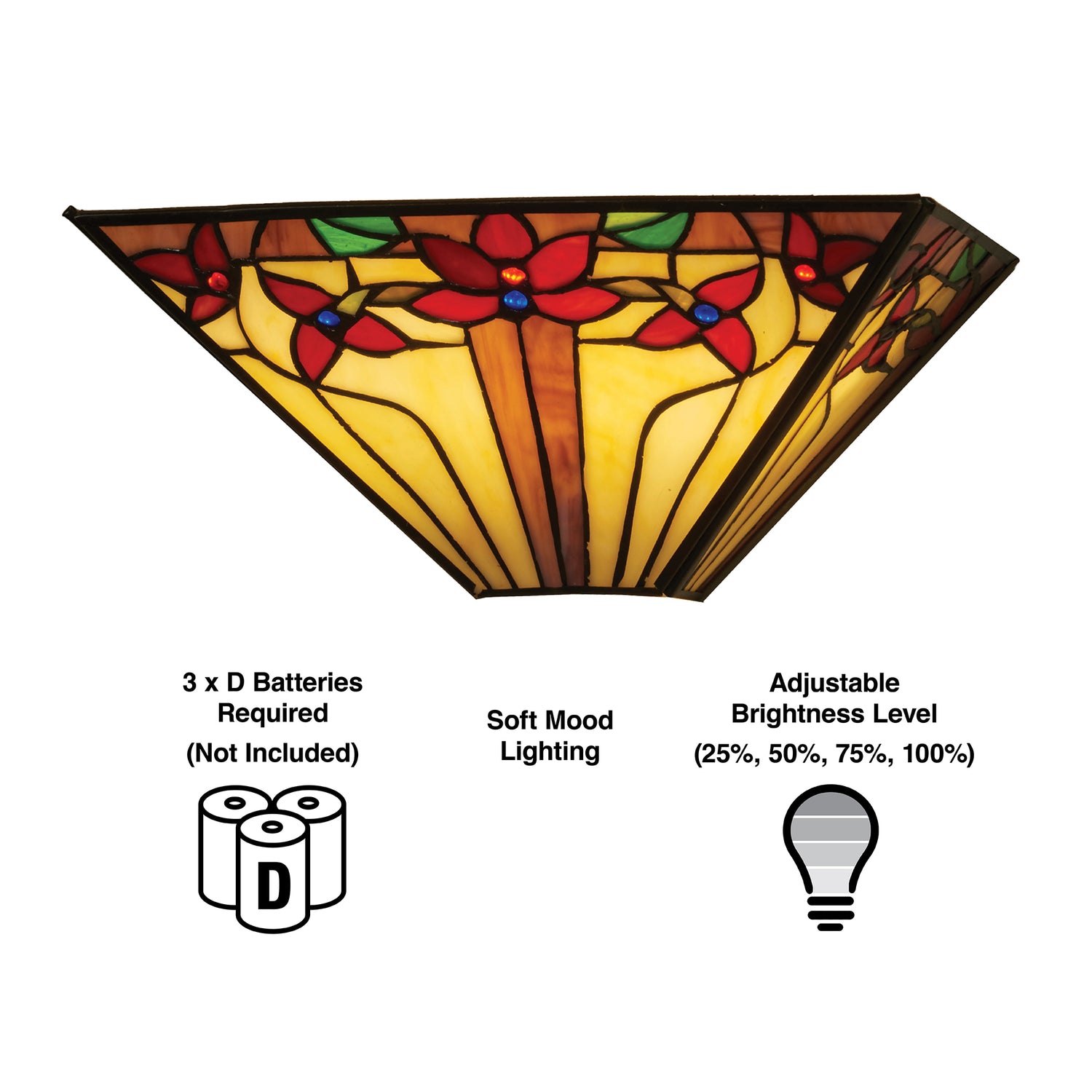- 4 stage dimmer allows you to choose brightness level (25%, 50%, 75%, 100%)
