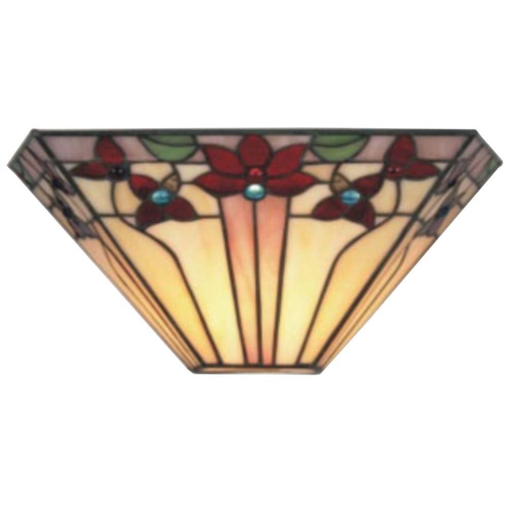 - Stained glass sconce in V shape with creme and flower details