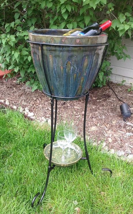 Ceramic Urn/Cooler with Tall Metal Stand (green)