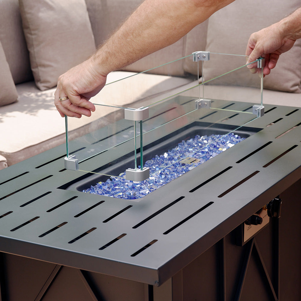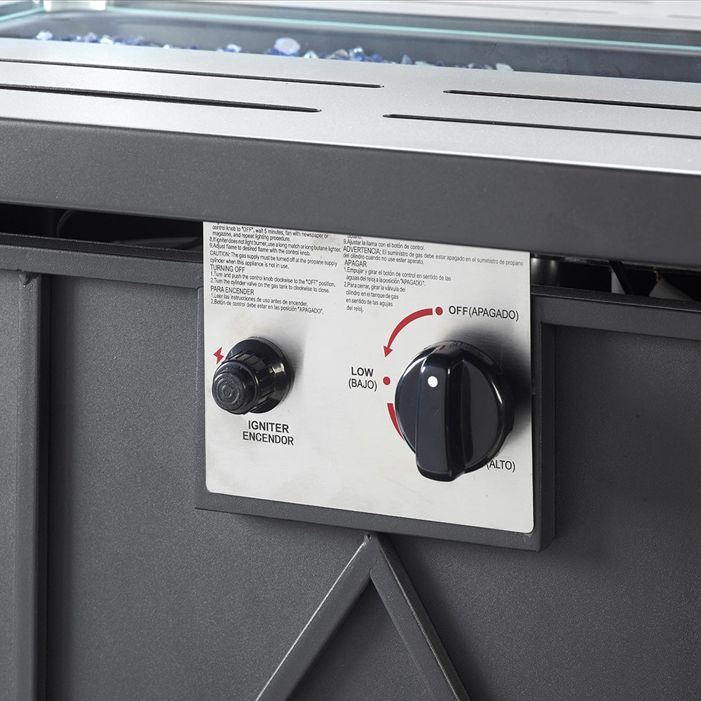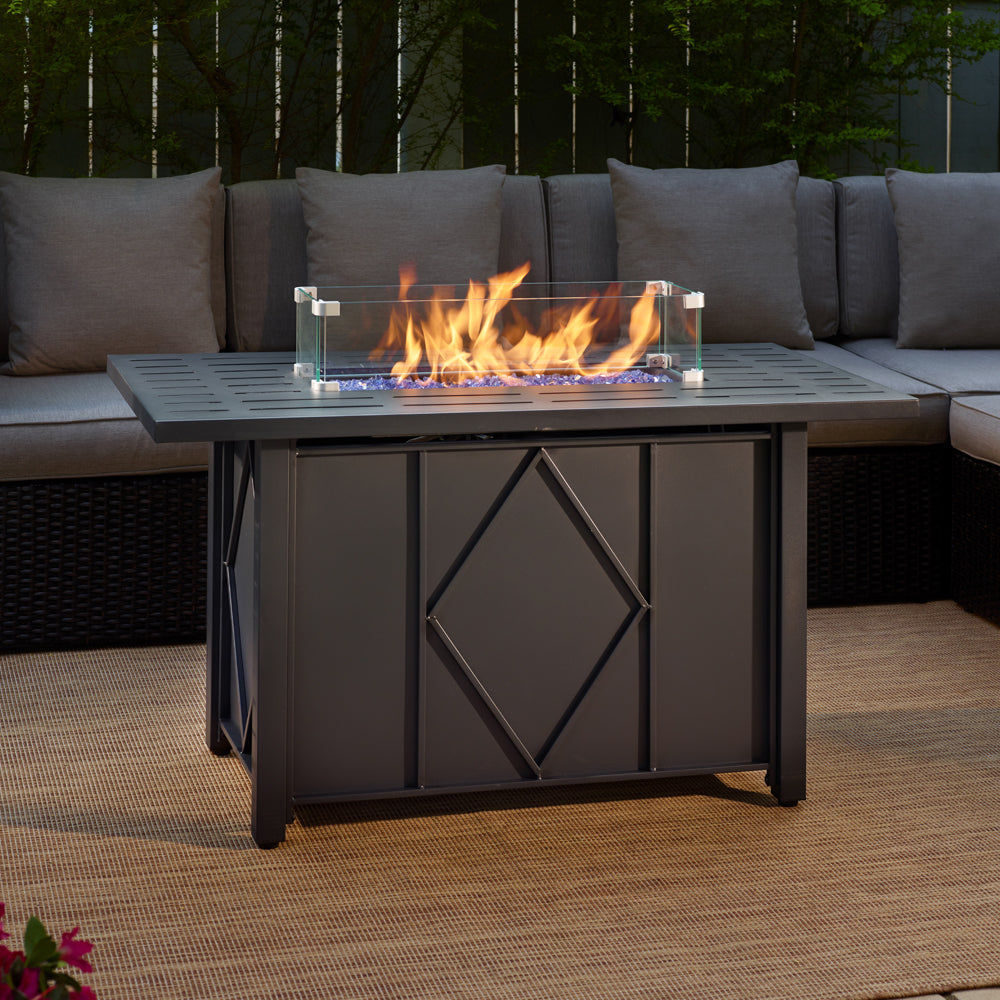 - 55,000 BTU propane gas steel fire pit with square fire bowl